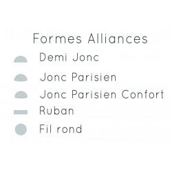 Cette alliance de mariage est un jonc parisien confort. C’est une forme plus ronde et plus épaisse que les formes demi-jonc et jonc parisien. Sa spécificité est qu’elle est aussi bombée à l’intérieur, ce qui la rend plus confortable lorsqu’elle est portée. Visuellement plus imposante, elle reste très élégante et peut être une alliance de mariage femme aussi bien qu’une alliance de mariage homme. Sa largeur va de 2 à 4 mm.