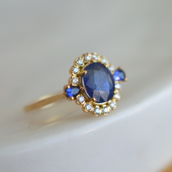 Pierre fine - Saphir bleu , Caratage / Qualité diamant - 0,23ct / G-VS, Caratage pierre centrale - 2,01ct