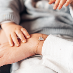 Découvrez notre joli bracelet en or jaune 18 carats et son coeur perlé d'or avec son centre en nacre.