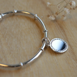 Ce superbe bracelet personnalisé se compose d'un jonc en argent 925 de 58 mm de large.