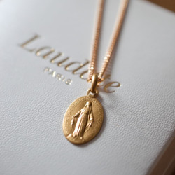 De forme ovale, cette médaille miraculeuse en or jaune 18 carats est une déclinaison de la médaille de la rue du Bac classique, mais le dessin au verso est diminué pour laisser la possibilité d'une gravure. Un prénom ou une date peuvent être apposés pour une personnalisation symbolique. Taille 17mm, 2,2g. Idéal pour un cadeau de baptême personnalisé, que le baptisé gardera toute sa vie. Cette médaille miraculeuse à graver peut être offerte autant à un garçon qu'à une fille.