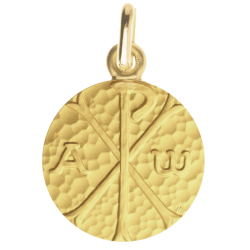 Offrir une médaille de baptême est une démarche très forte et symbolique. La médaille Chrisme est frappée en or jaune 9 carats et fabriquées en France. Le Chrisme ou également "Monogramme du Christ" est un symbole chrétien très important . Est inscrit le α (alpha), première lettre de l'alphabet grec, et l' ω (omega), dernière lettre de l'alphabet. Ce qui représente le "Tout", le "Commencement" et la "Fin".
