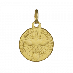 La médaille du Saint Esprit gravée VENI SANCTE SPIRITUS est très aimée et peut être offerte pour un baptême d’enfant ou d’adulte, pour une première communion ou pour une confirmation. Cette médaille délicate de par son relief, sa douceur, et sa petite taille 14mm, évoque la pureté et l’amour qui mènent à la paix. Proposée en or 18 carats, cette médaille garde toute la finesse du moindre de ses détails. Gravure possible. Fabrication française. Une de nos magnifiques médailles de baptême chargées de sens